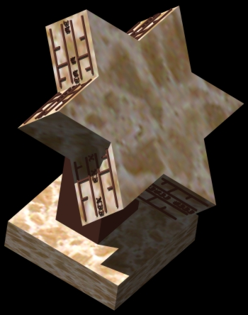 Figura 1: Relógio de sol Estrela de Davi (CAD) A Figura 2 ilustra o layout das linhas horárias para o relógio de sol Estrela de Davi. Este relógio de sol é feito de seis triângulos equiláteros, definidos nos lados de um hexágono. Os lados dos triângulos são iguais e o ângulo entre quaisquer dois lados é sempre 60°. Cada lado da estrela mostrará a sombra por duas horas e quando a sombra deixar um lado, aparecerá no outro. Este mostrador tem quatro faces em branco, devido ao fato do Sol não alcançá-las em latitudes mais baixas. Nas latitudes altas, bem ao Norte, o Sol atingirá todas as doze faces e estas poderão ter linhas horárias atribuídas a elas.